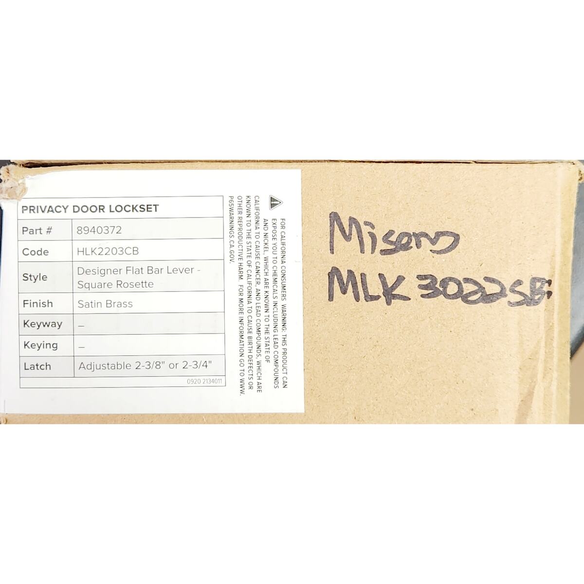 Miseno MLK3022SB Lorton Flat Bar Privacy Door Lever Set - Satin Brass