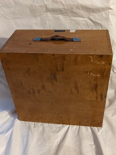 Up for sale is a used working Griffin George Vernier Measuring Travel Microscope Accessories Wood Case.