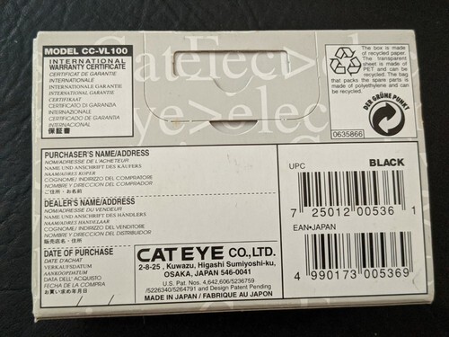 Up for sale is a new in box Cateye Velo 1 Wired Bike Bicycle Cyclomputer Computer Black 2 Features CC-VL100