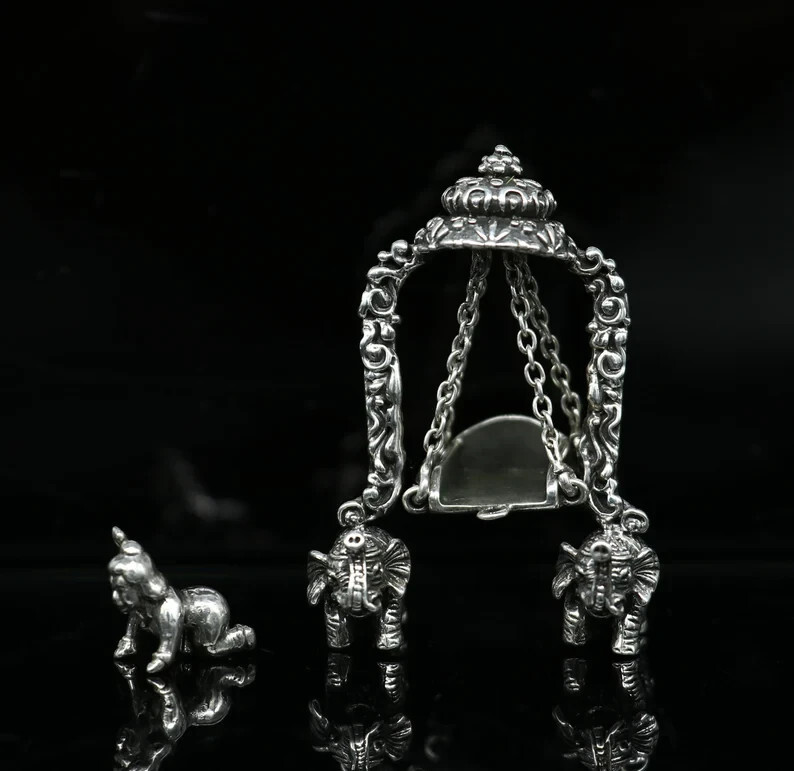 925 sterling silver Lord Krishna with swing statue figurine puja articleart39