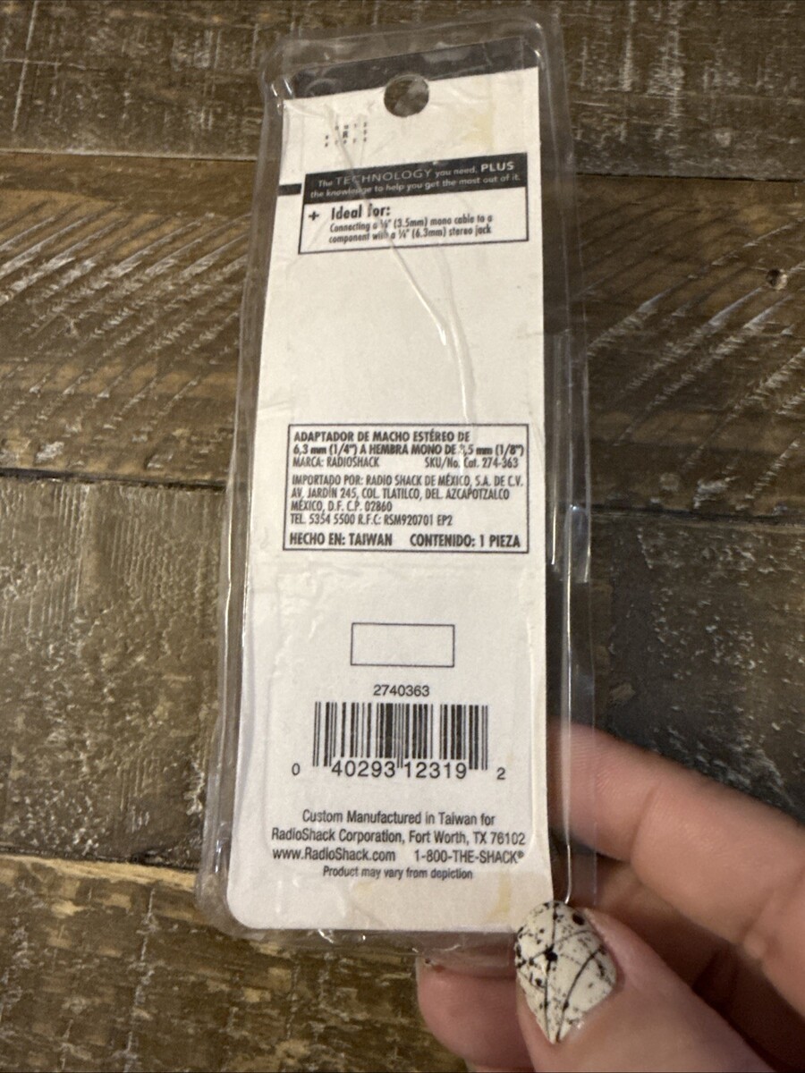 The RadioShack 1/8 mono jack to 1/4 stereo plug headphone adapter model 2740363 is a versatile audio adapter that allows you to convert a 1/8 mono headphone jack to a 1/4 stereo plug, enabling compatibility with a wider range of devices. With a 3.5mm female connector on one end and a 6.3mm stereo male connector on the other, this adapter is perfect for connecting headphones or speakers to various audio devices. Designed by RadioShack, a trusted brand in electronics, this adapter is a reliable and convenient accessory for enhancing your home audio system.