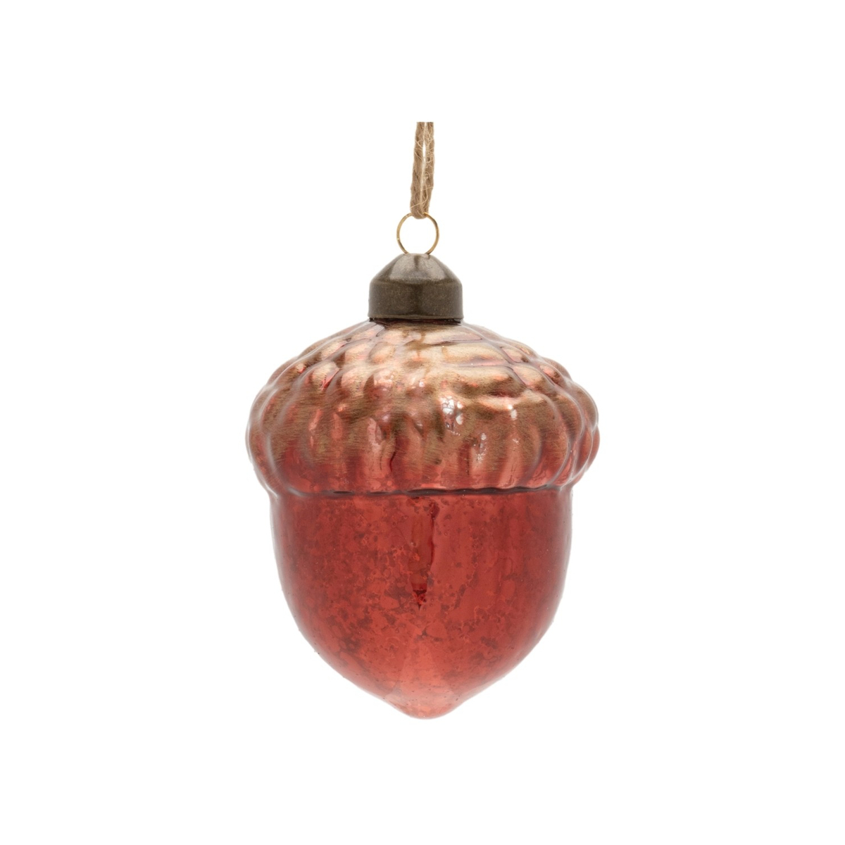 Festive Red and Gold Tones Rich, vibrant colors that capture the essence of the season. Mercury Glass Finish Adds a touch of vintage elegance and a reflective glow to your decor. Woodland-Inspired Acorn Shape A natural and charming design perfect for rustic holiday themes. Suitable for indoor use only