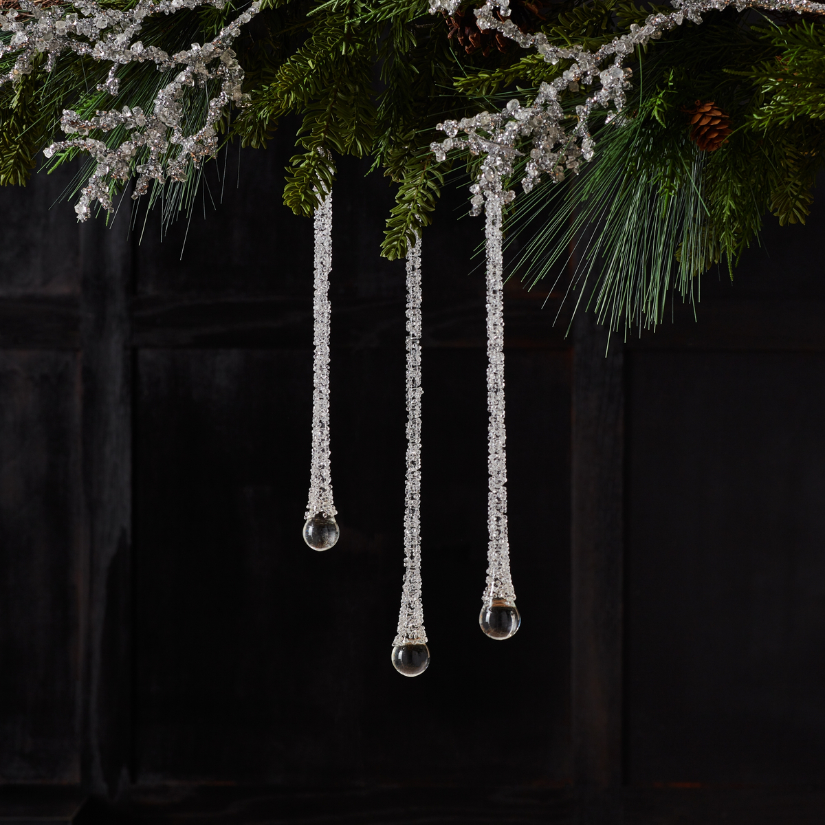 Clear Beaded Glass Icicle Drop Ornament (Set of 6)