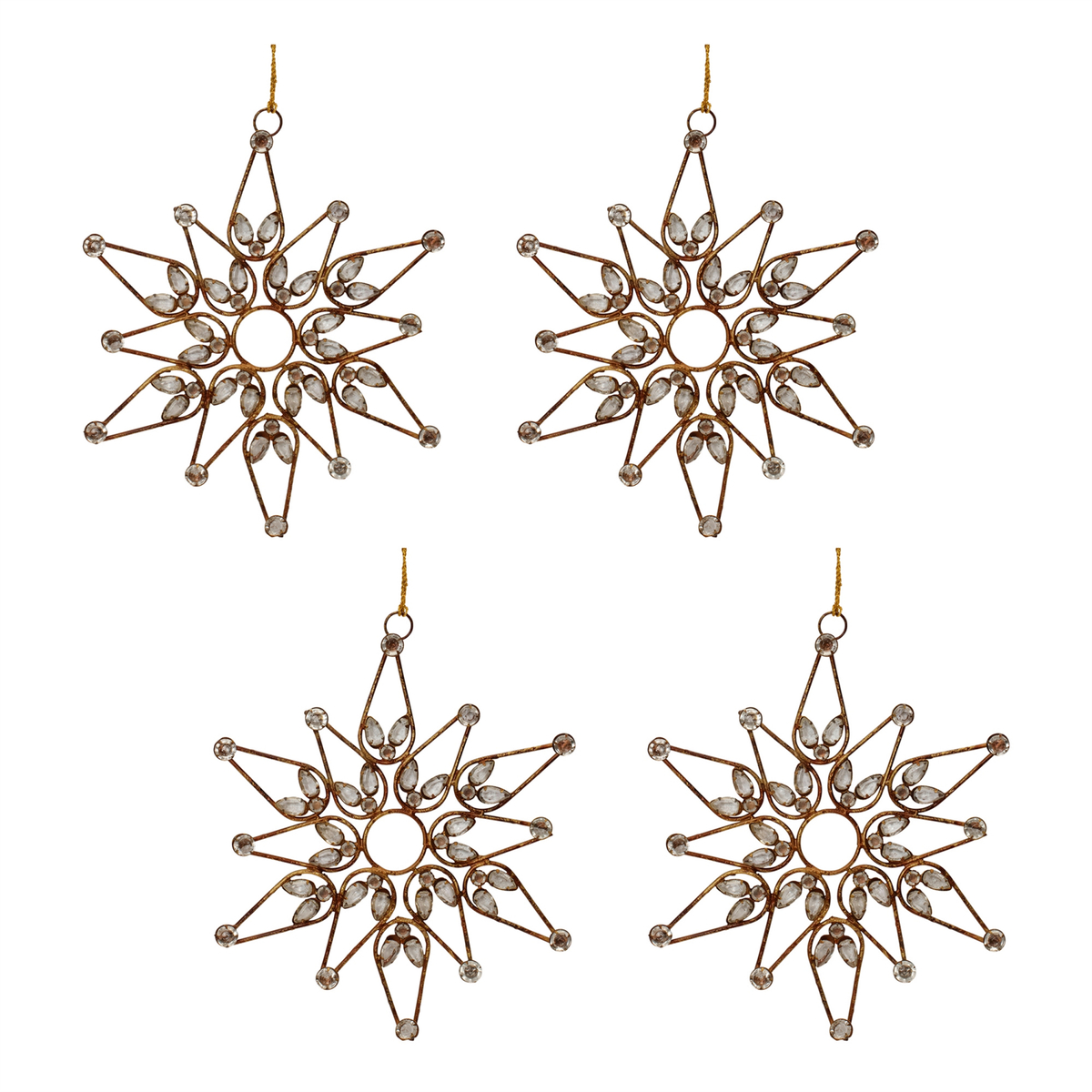 Bronze Jeweled Snowflake Ornament (Set of 4)