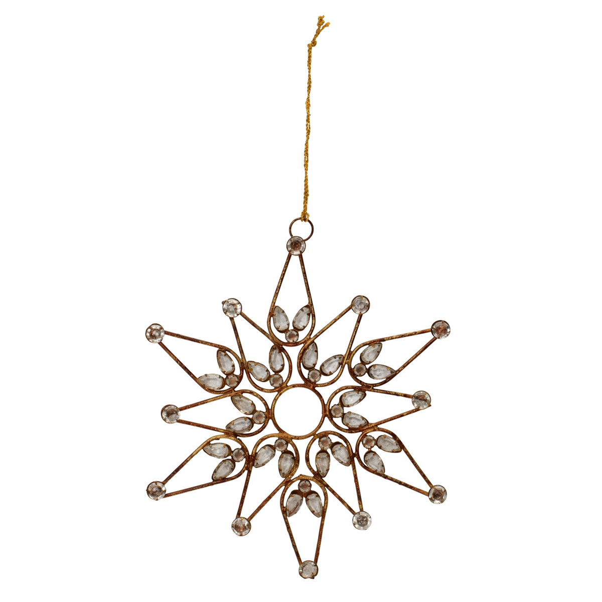 Add a touch of elegance to your holiday decor with this stunning set of Bronze Jeweled Snowflake Ornaments. Featuring intricately designed snowflakes, these ornaments blend rustic bronze tones with sparkling jewel accents for a sophisticated holiday display. Crafted from durable iron and shimmering glass, each piece is suspended from a delicate gold string, making them perfect for adorning your Christmas tree, garland, or wreath. Whether for your own festive decor or as a thoughtful gift, these ornaments bring timeless beauty and holiday cheer year after year. Sold in a set of four matching pieces to create a balance display on your Christmas tree.