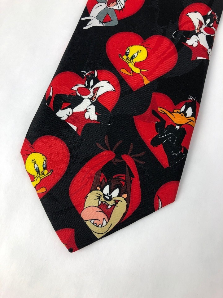 Looney Tunes Mania Heart Valentine Novelty Necktie Vintage 1997