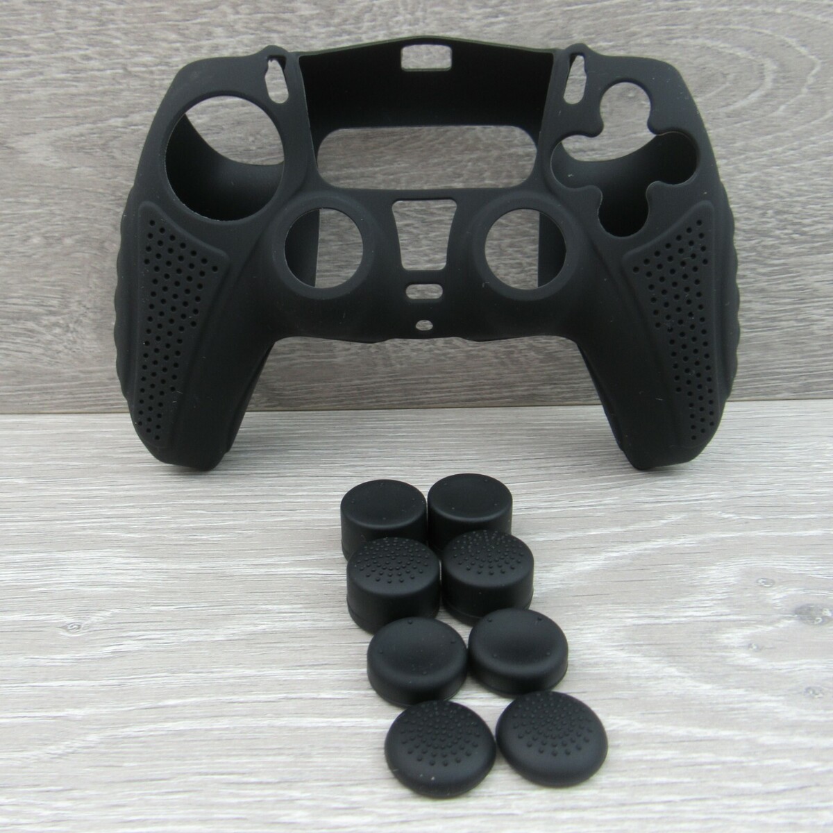 Silicone Grip Black + (8) Multi Thumb Analog Caps For PS5 Controller Accessories