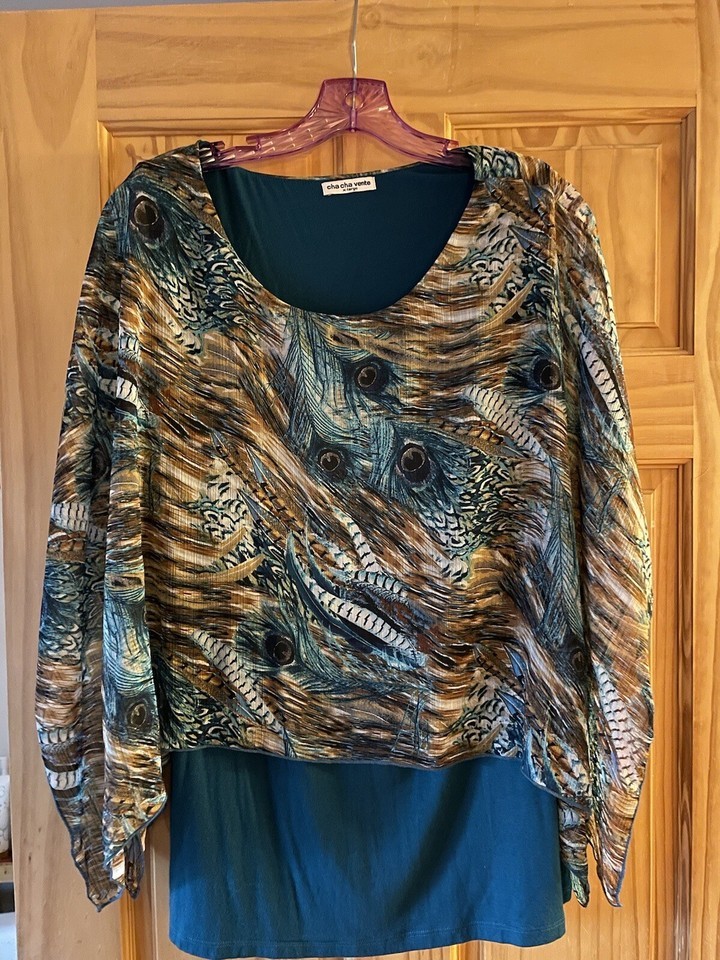 This stylish Cha Cha Vente blouse in size XL is perfect for any fashion-forward woman. With its vibrant multicolor design, this sleeveless top is sure to make a statement. Made from high-quality materials, this pre-owned blouse is both comfortable and durable.