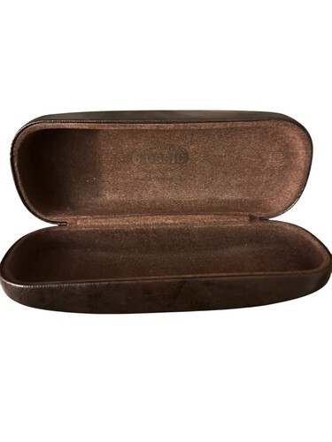 VINTAGE Logo Fossil Embossed Brown Leather Hard Eye Ware Glasses Clam shell Case.