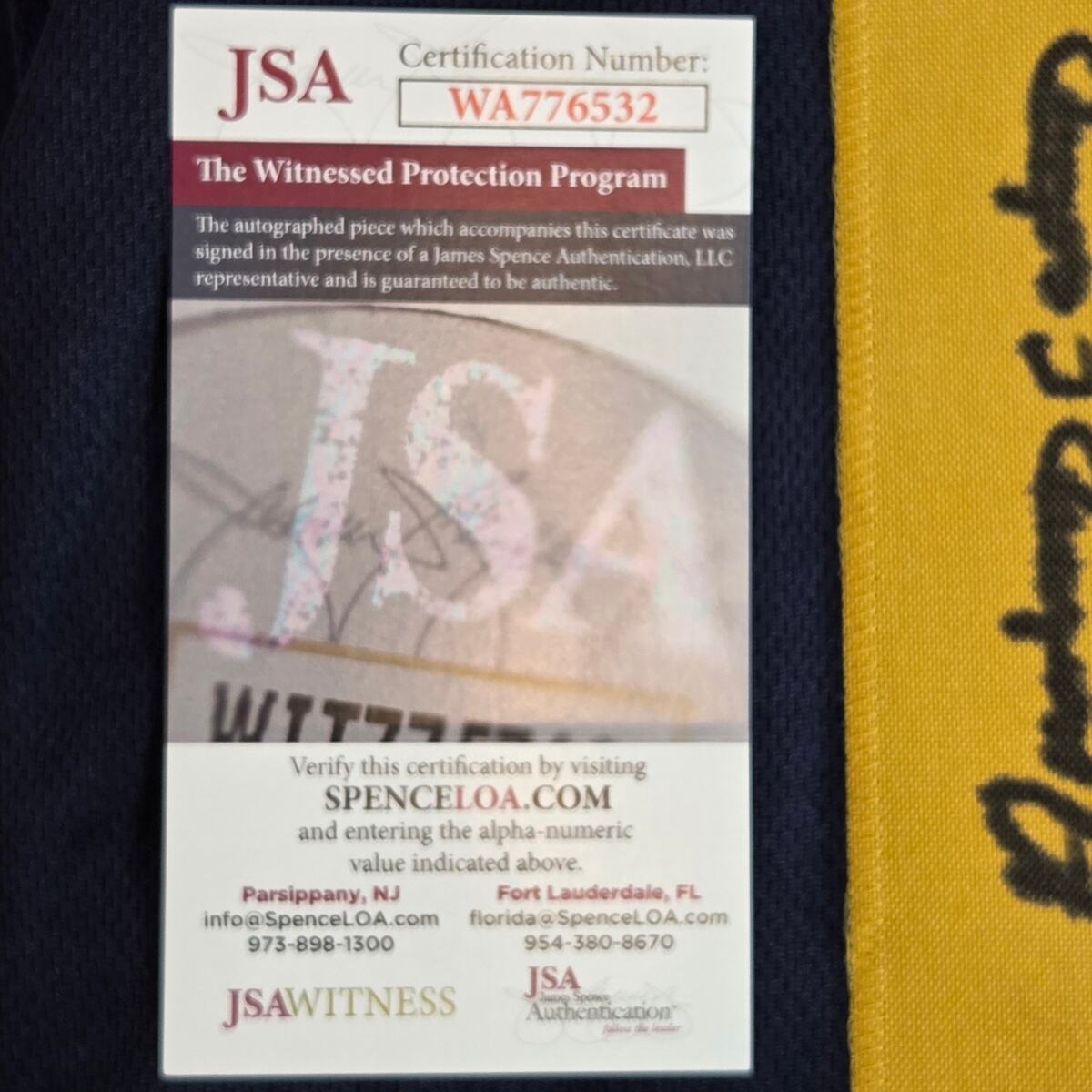 What?s included: Signed jersey + JSA card (no frame)
