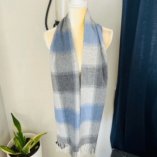 PHENIX Cashmere Mixed Weave Buffalo Plaid Scarf, Soft Luxurious, Blue Plaid, NWT