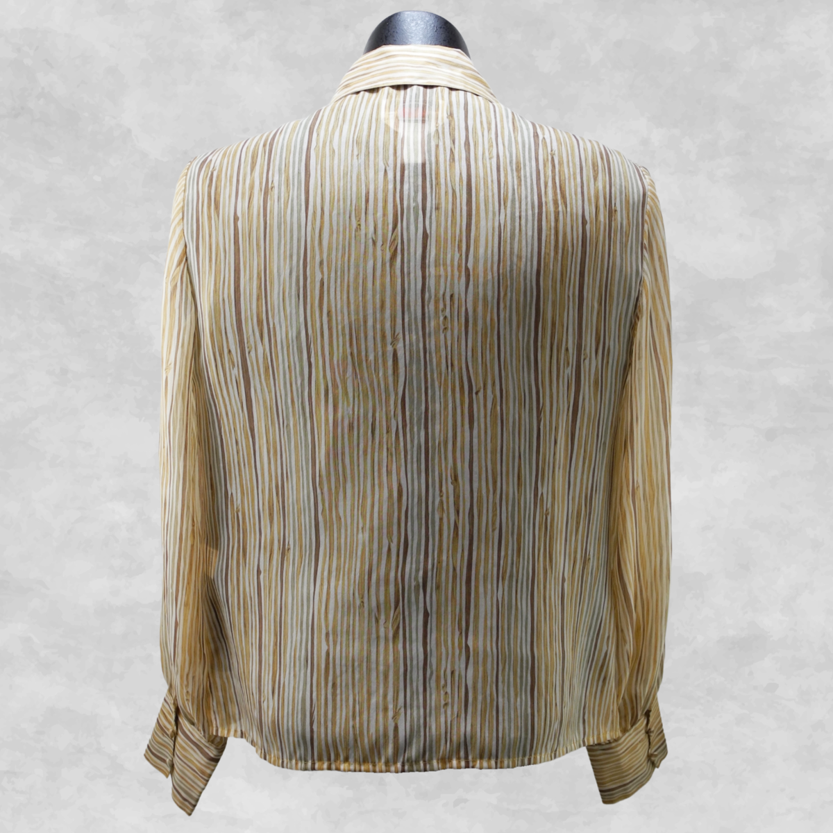 Talbots 100% Silk Striped Button Front Blouse Beige Gold Sheer Women's Size 4