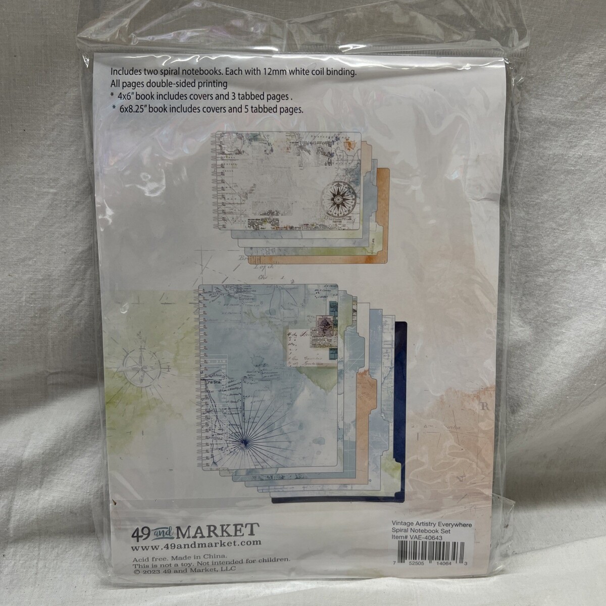 49 & Market NIP Vintage Artistry Everywhere Spiral Notebook Set Of 2 6x8.25 4x6