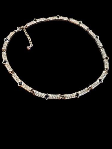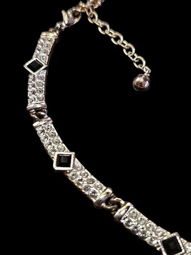 UP FOR SALE: Vintage Napier Silver Tone Necklace Diamante Crystals Black Rhinestones 1980s