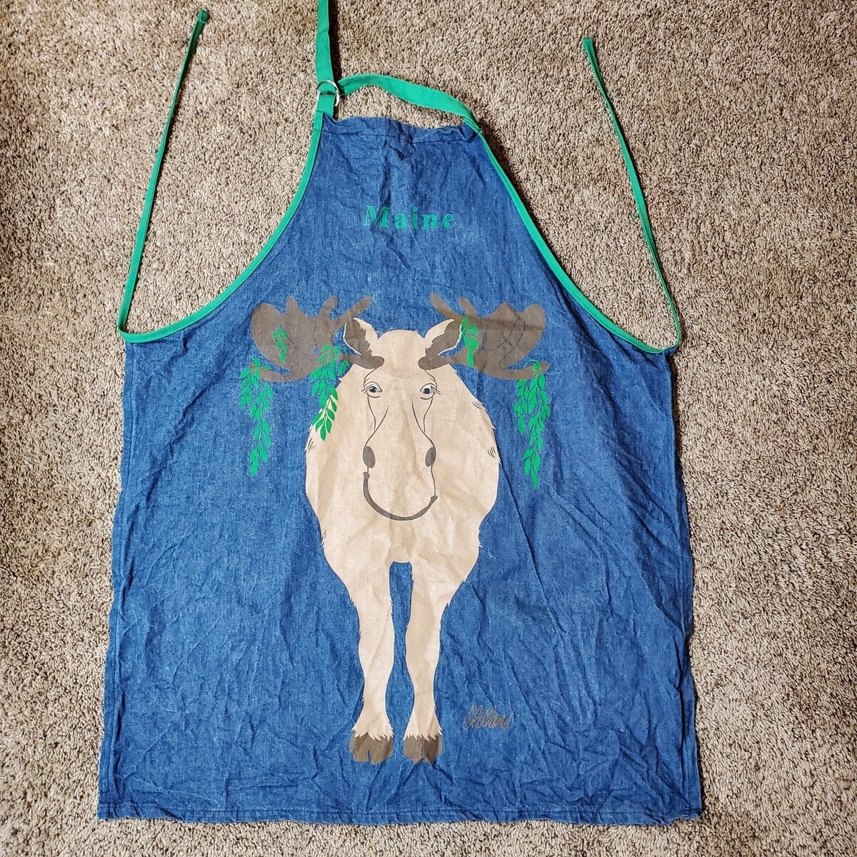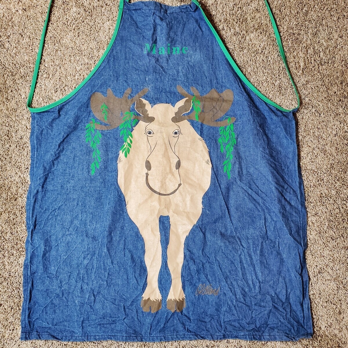 Vintage Kitchen Cooking Apron Full Moose From Maine Blue Jean Material