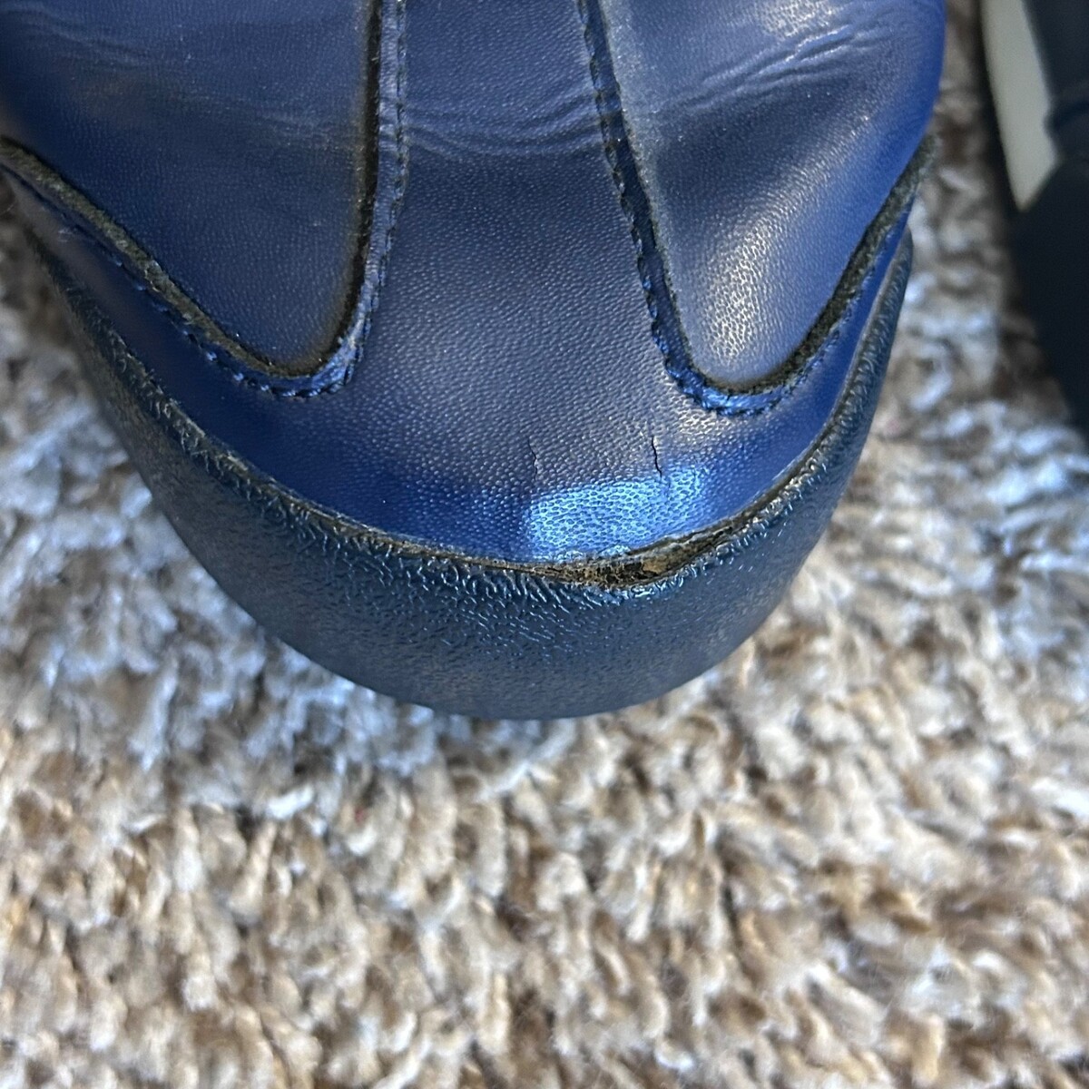 See all photos for any flaws or wear. There is slight separation on toe as shown in photo.