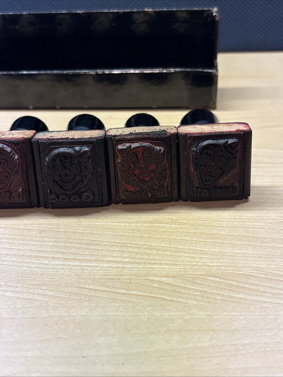 Vtg Summit Industries Teacher Grading Picture Language Stamps Clowns set of 6. Stamps were used.