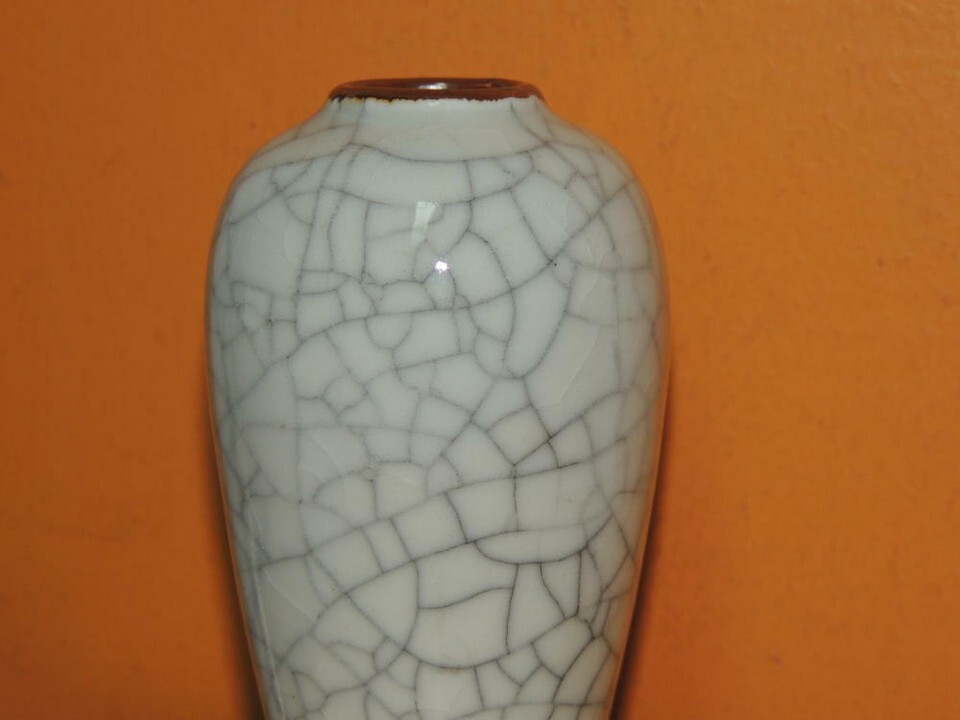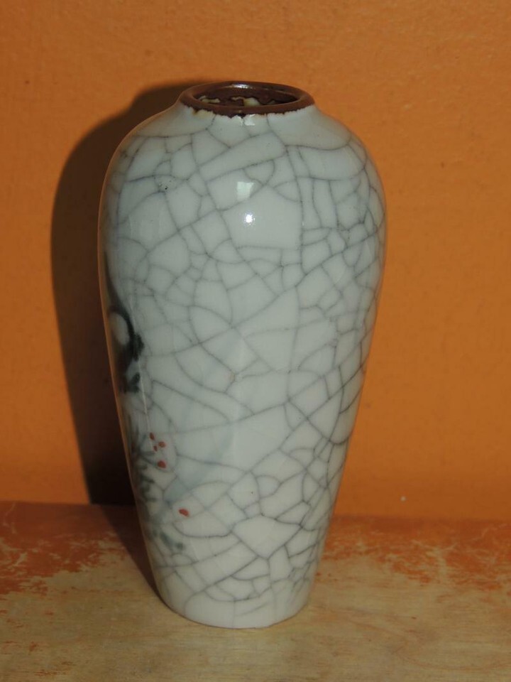 Crackle glaze 4.5" Vase hand painted Koi Kelp Blue Red Ge / Guan type Asian