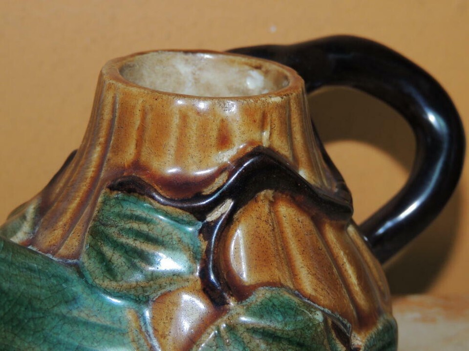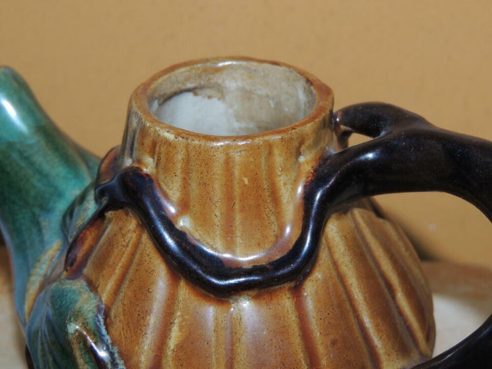 Vintage Gourd shaped Teapot 4.75"x6"x3.5" brown green Vintage asian Chinese