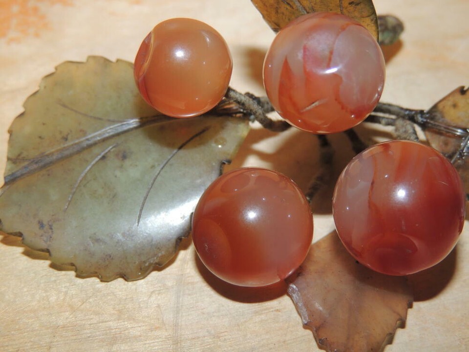 Vntg Chinese Carmel Agate Cherries Branch Leaves Carnelian Jade Jadeite Nephrite
