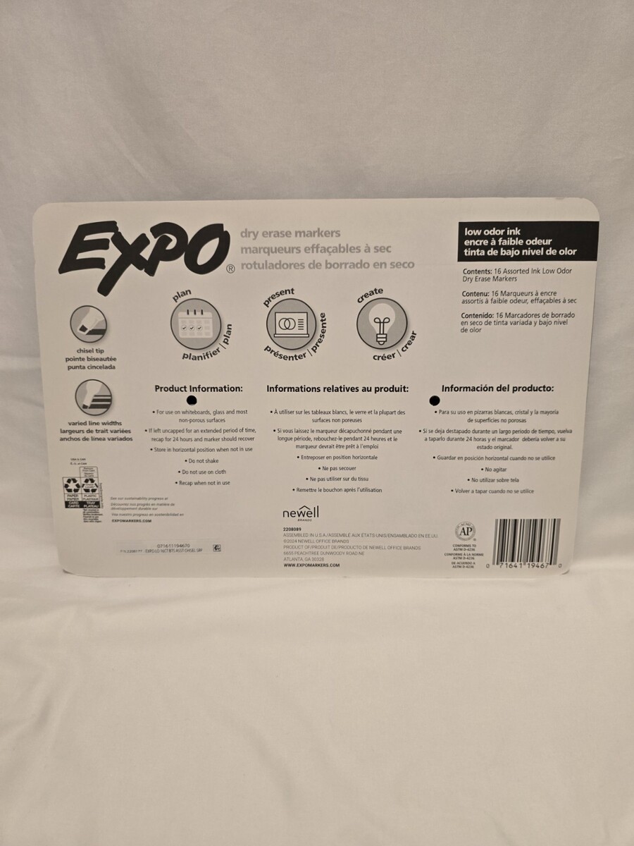 Expo Chisel Tip Dry Erase Low Odor Ink Assorted Color Markers - 16 Count
