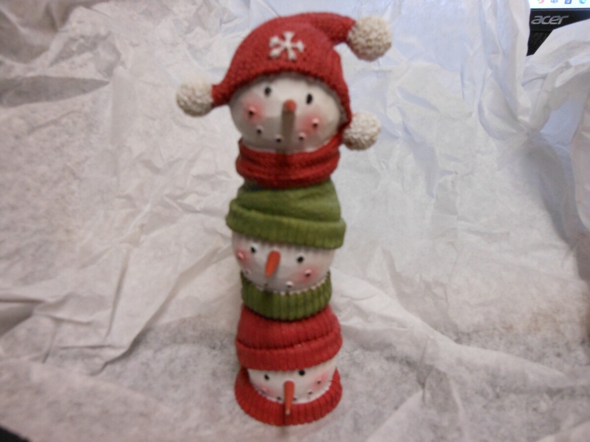 Crossroads "3 Stacked Ski Hat Wearing Snowmen" Figurine 4 3/4" NWT