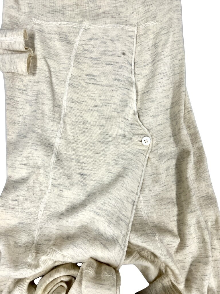 Fine cotton knit (lighter in person than photos suggest), button front, back trap door with button closure.