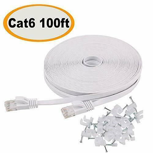 Cat6 Ethernet Cable 100 FT Flat White With Clips Jadaol? Network Cable Thin 6