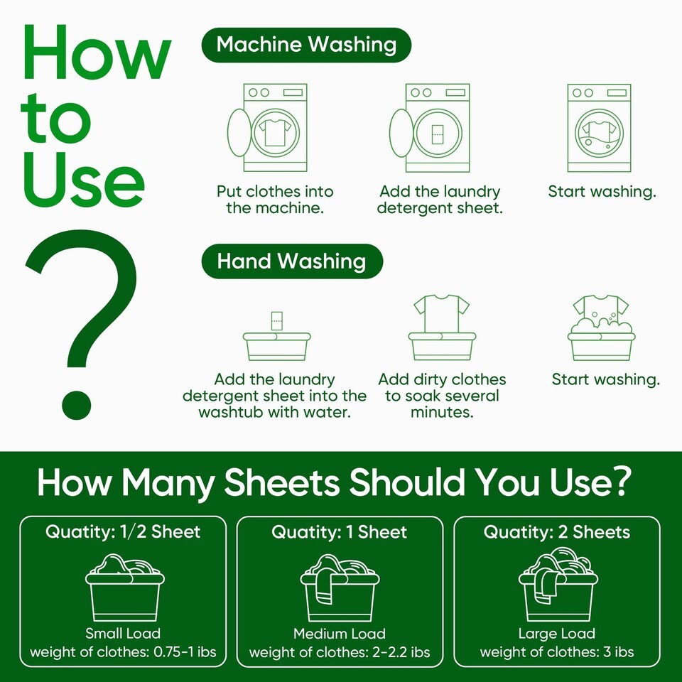 High-Value Pack: Includes 300 small loads=150 large loads=150 sheets. please soak the clothes with sheets for 15-30 minutes before washing them. )