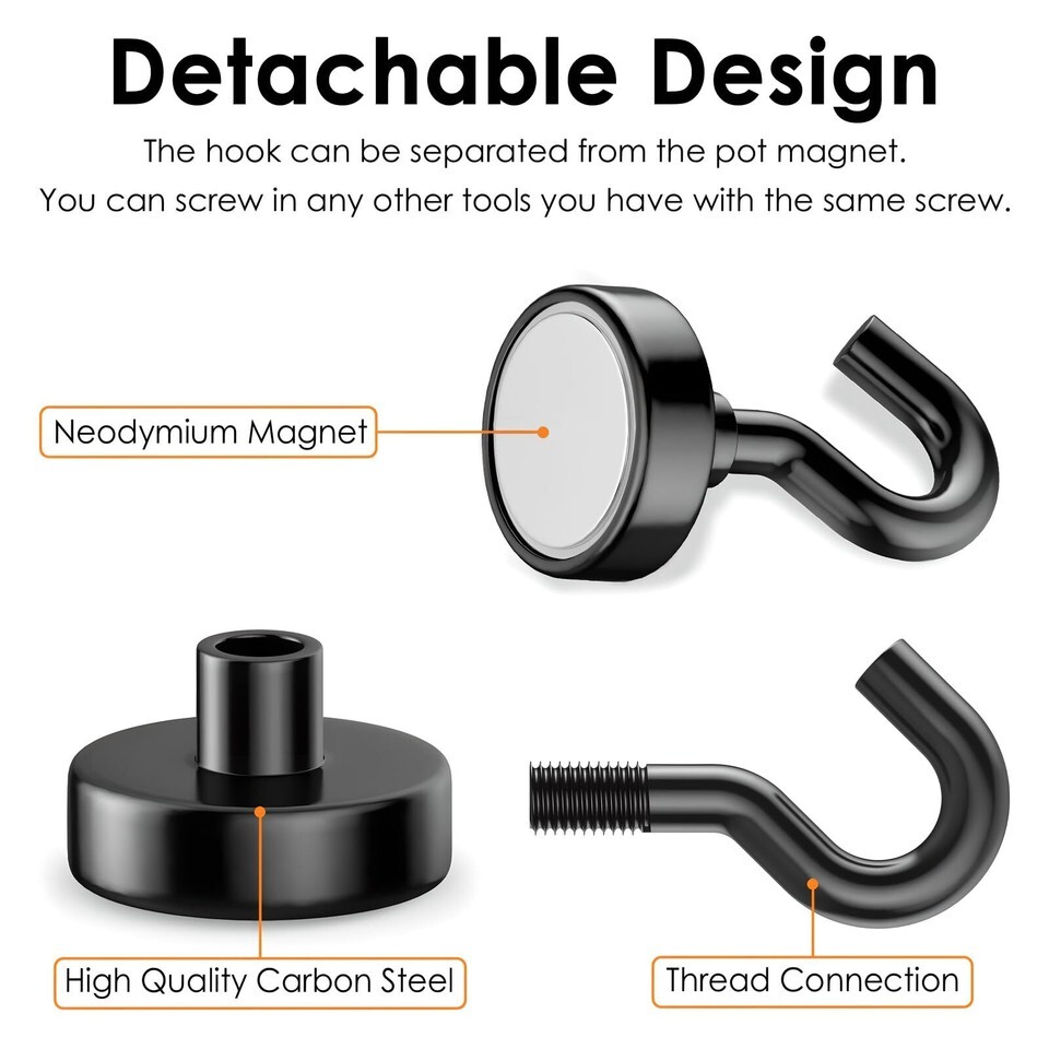 ?Premium Coating?Triple-layer Ni+Cu+Ni coating ensures ultimate rust resistance and adds a shiny finish to our magnet hooks. The steel cup provides protection and prevents chipping or cracking.