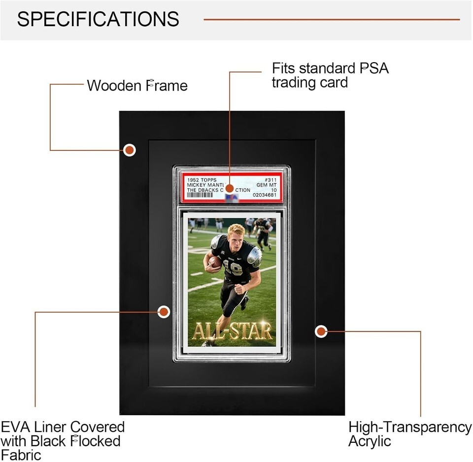 Graded Trading Card Display Case 1 PSA Slab Sport Football Baseball Wood Frame