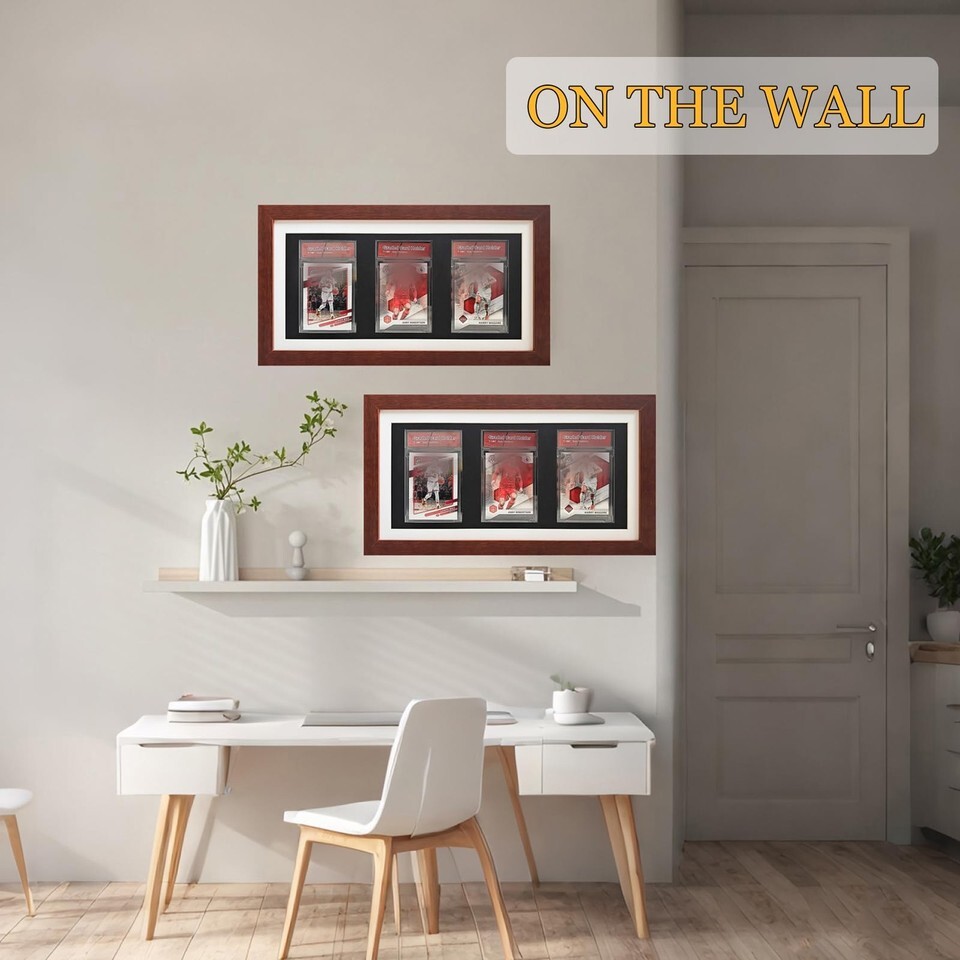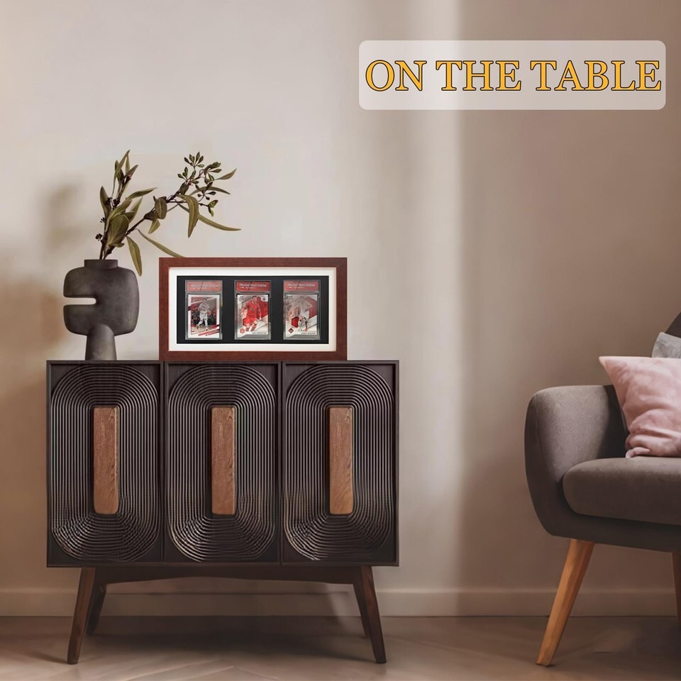 Graded Trading Card Display Case 3 PSA Slabs Sport Football Baseball Wood Frame