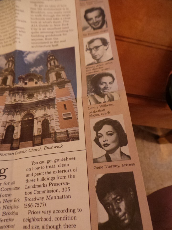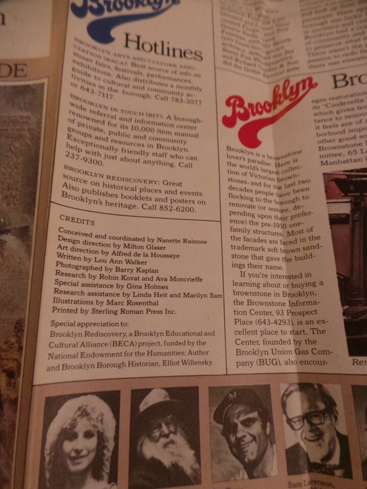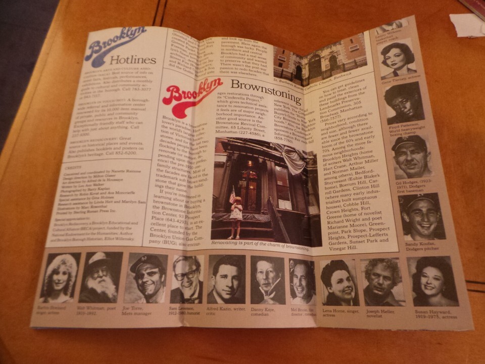 this is a fabulous 1980's "I LOVE NEW YORK Brooklyn Travel Guide"..a Huge Foldout with thumbnail photos of famous Brooklynites that go all around the edges.