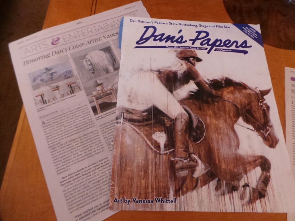 This is the cover art only of 2 Hamptons Dan's Papers issues from August 2021 and August 2023. beautiful cover art relating to the annual Hampton Classic Equestrian show