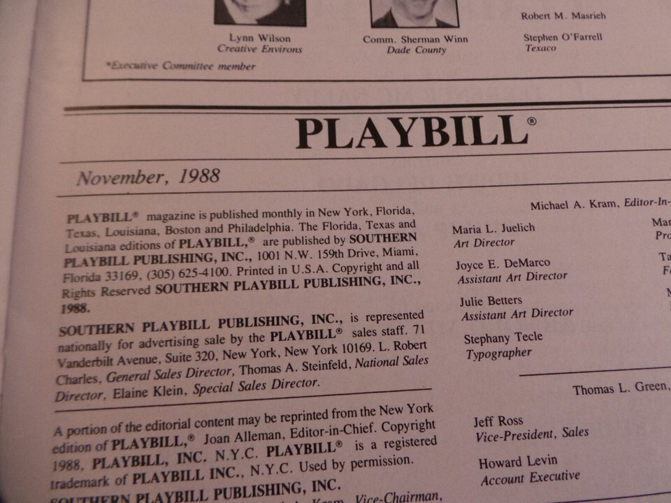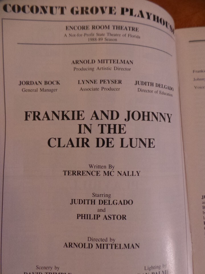 Playbill Frankie and Johnny in the Clair de Lune Coconut Grove Playhouse 1988 VG