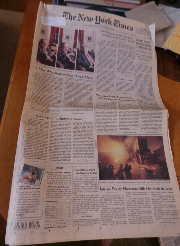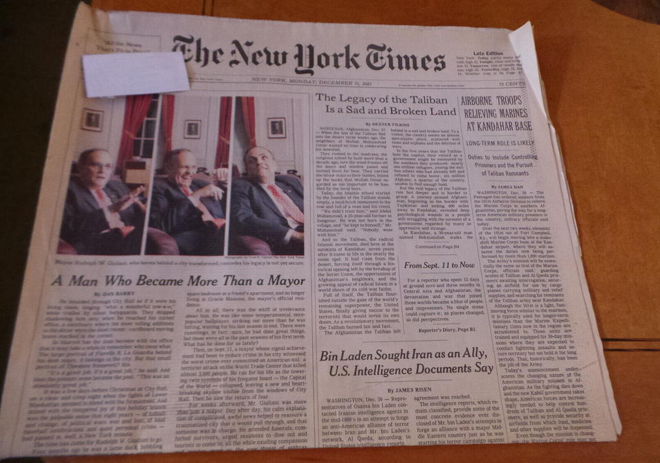 New York Times Rudy Giuliani "A Man Who Became More Than a Mayor" from December 2001