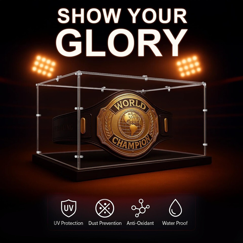 Extra-Large for Championship Belts: Display your championship belt with pride. This clear acrylic display case features a generous interior space of 23.62" x 15.75" x 15.75", perfect for wrestling belts, boxing belts, helmets, model cars, and other large collectibles. Its solid construction and sleek design make your belt the true centerpiece?whether in your room, office, or gym.