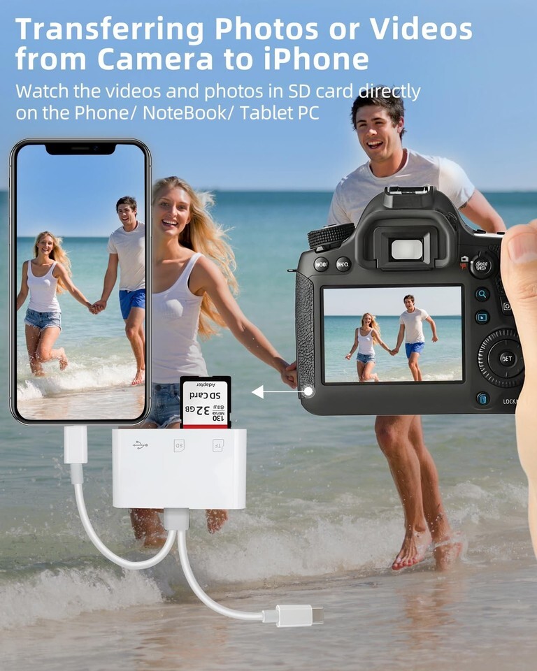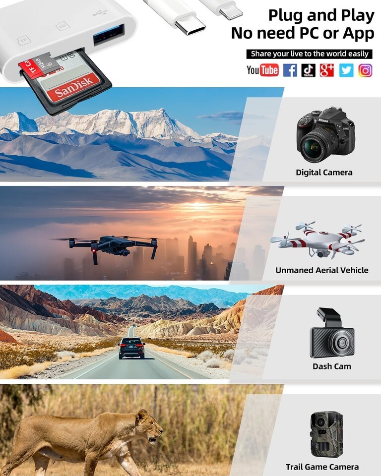 SD Card Reader for IPhone, IPad, USB C Dual Port SD TF USB Memory Card Adapter