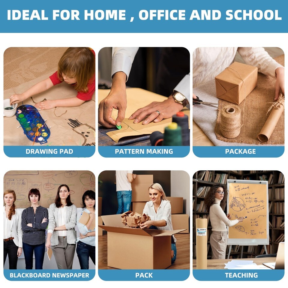 Sturdy and Reliable: Crafted with industrial-grade heavy-duty paper, our kraft paper roll is designed to withstand the rigors of shipping, packing, and moving. It won't rip or tear easily, making it a reliable choice for all your packaging needs. Say goodbye to newsprint paper sheets and construction paper ? our durable roll meets your everyday use requirements.