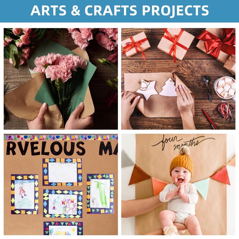 Perfect for Home, School, and Office: Our brown kraft paper roll is a must-have item for packing, moving, floor covering, table runners, bulletin boards, and more. It's an ideal choice for wrapping gifts on Christmas, birthdays, Mother's Day, Valentine's Day, and weddings. This versatile paper can also be used as craft paper, poster paper, and packing paper for moving. Whether you're at home, school, or the office, this kraft paper roll will meet all your needs.