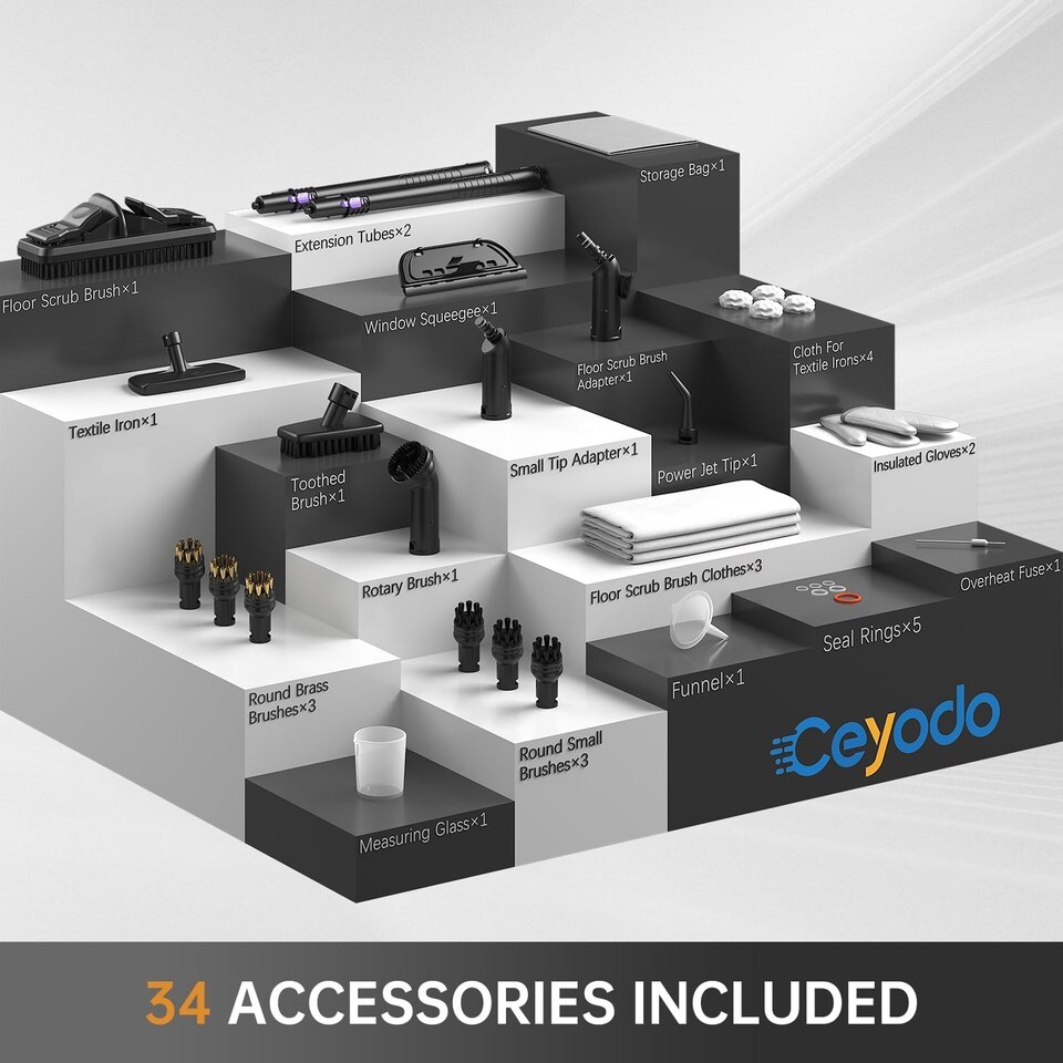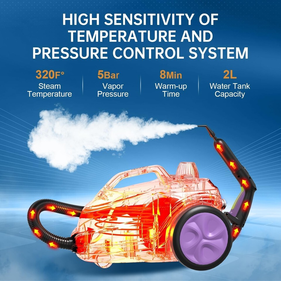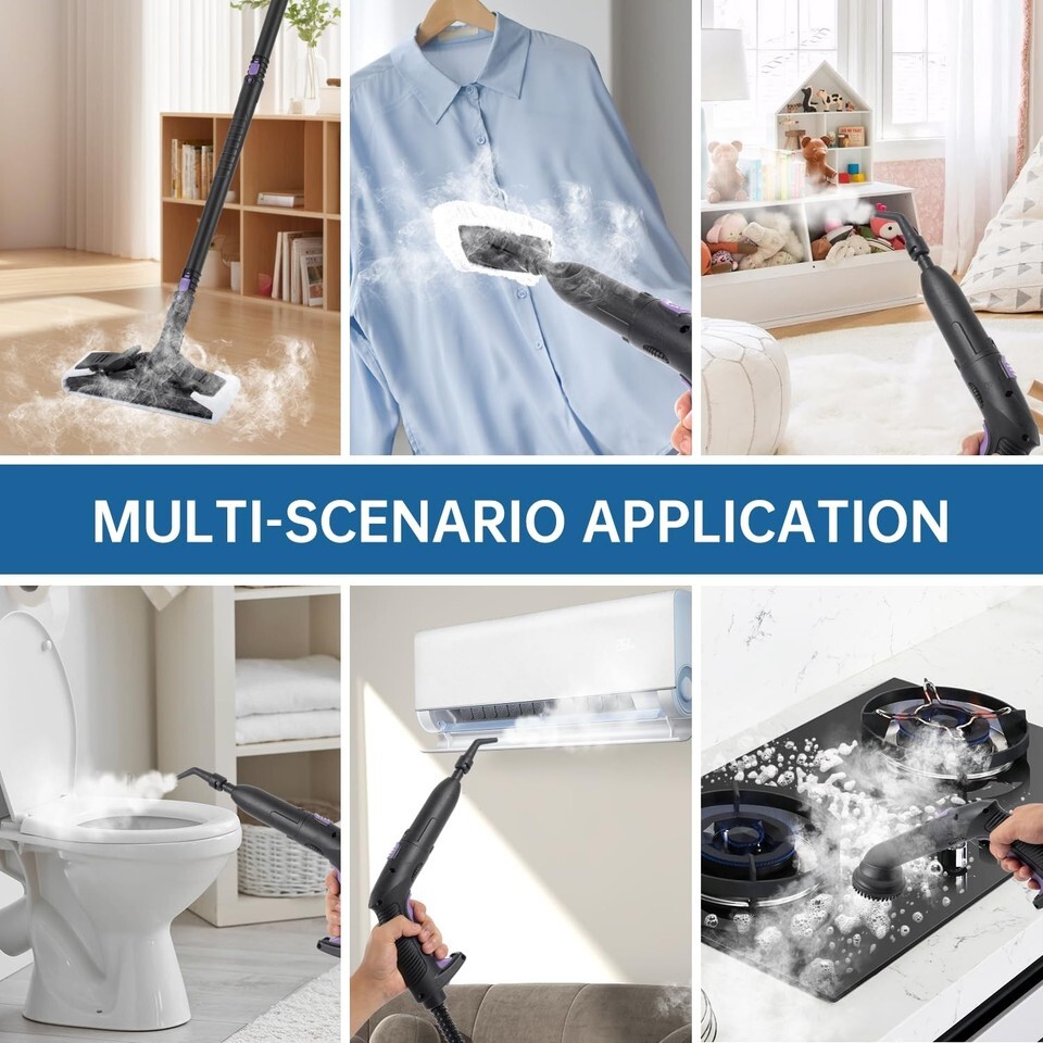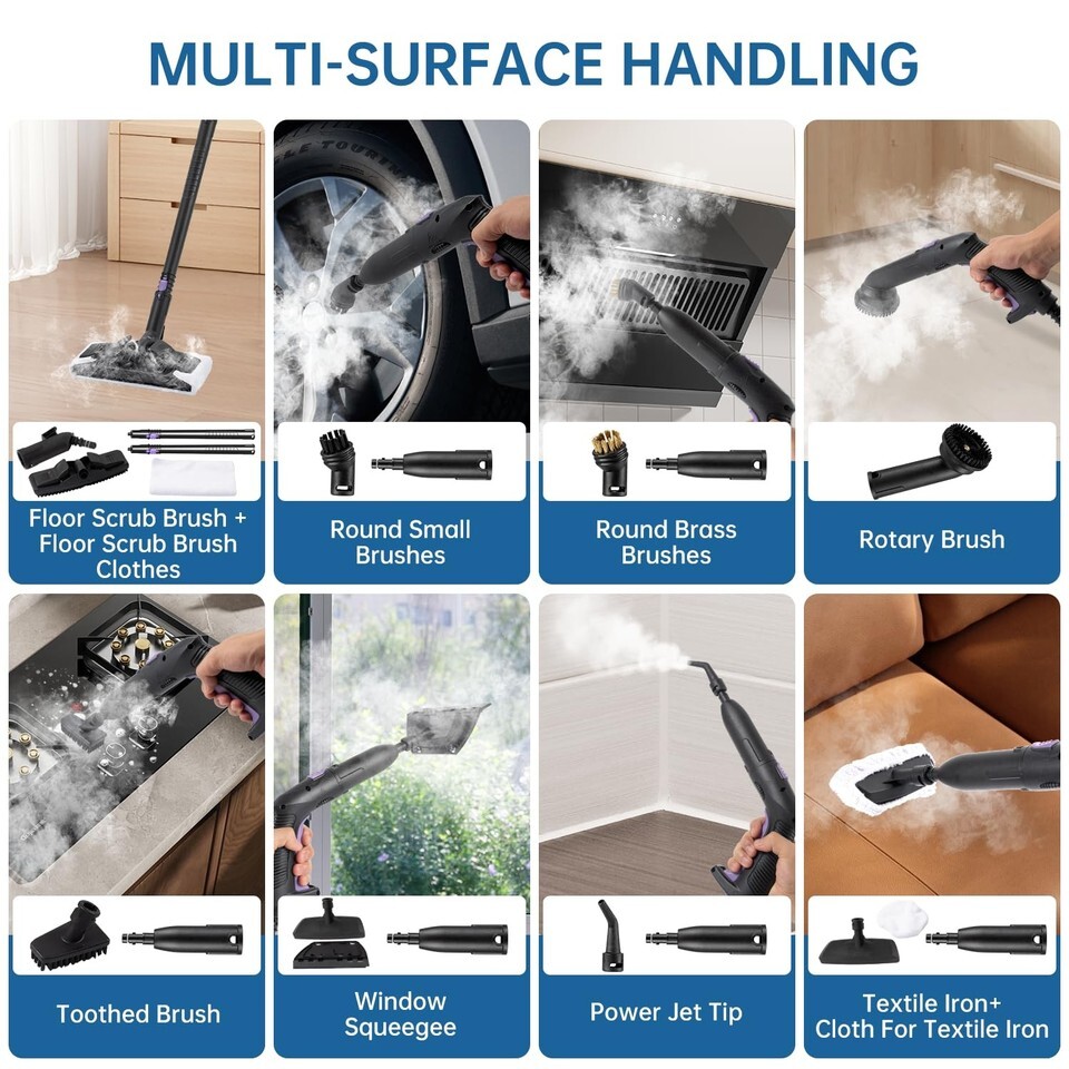 MULTIFUNCTIONAL APPLICATIONS: Our steam cleaner is a versatile solution that adapts to every aspect of your daily life. You can rely on it to clean floors, kitchens, tiles, grout, sofas, clothes, toilets, bathrooms, kitchen sinks, appliances, range hoods, windows, grills, upholstery, cars and more.