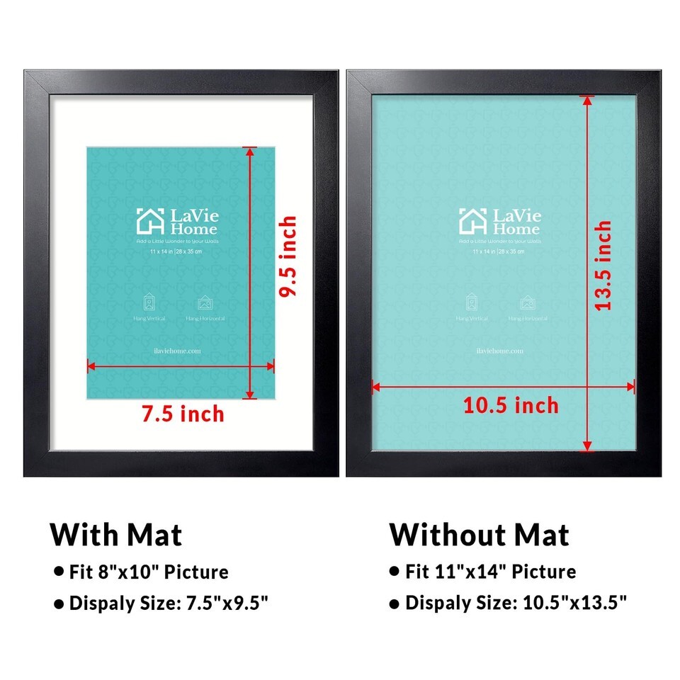 11x14 Picture Frame Black Poster Frame Wood Photo Frame Display Wall Mounting - fits 11x14 picture without mat, 8x10 picture with mat