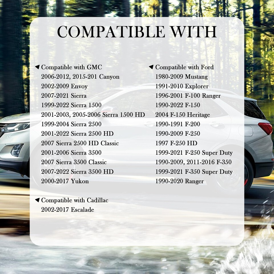 ?Compatible models?: This kit has special compatible models, please check the compatibility of your car first. Our parts are compatible with GMC 2006-2012, 2015-201 Canyon, 2002-2009 Envoy, 2007-2021 Sierra, 1999-2022 Sierra 1500, 2001-2003, 2005-2006 Sierra 1500 HD, 1999-2004 Sierra 2500, 2001-2022 Sierra 2500 HD, 2007 Sierra 2500 HD Classic, 2001-2006 Sierra 3500, 2007 Sierra 3500 Classic, 2007-2022 Sierra 3500 HD, etc.