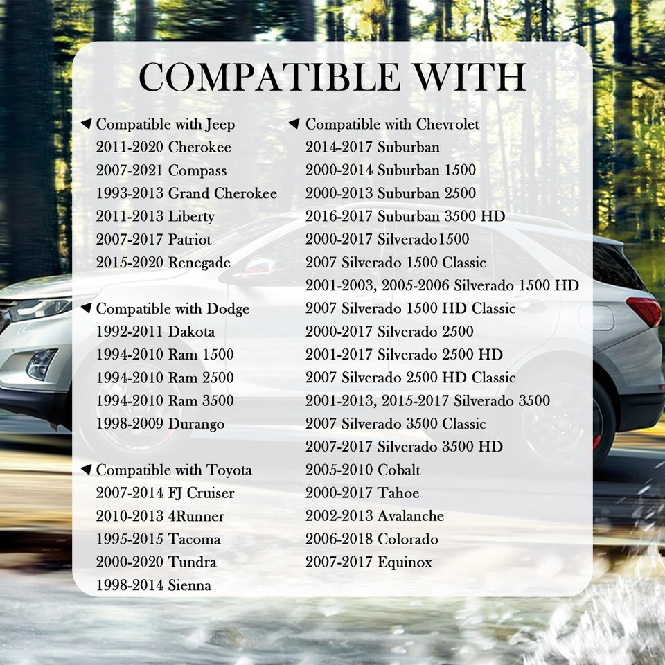 ?Compatible models?: Compatible with Chevrolet 2014-2017 Suburban, 2000-2014 Suburban 1500, 2000-2013 Suburban 2500, 2016-2017 Suburban 3500 HD, 2000-2017 Silverado1500, 2007 Silverado 1500 Classic, 2001-2003, 2005-2006 Silverado 1500 HD, 2007 Silverado 1500 HD Classic, 2000-2017 Silverado 2500, 2001-2017 Silverado 2500 HD, etc. For more specific models, please refer to the details page.