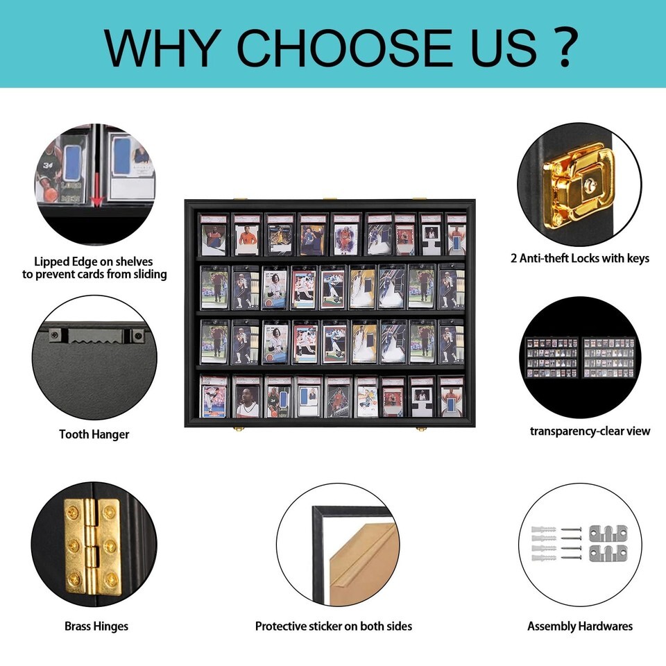 Graded Trading Card Display Case 36 Sport Baseball Football PSA Slabs Cabinet