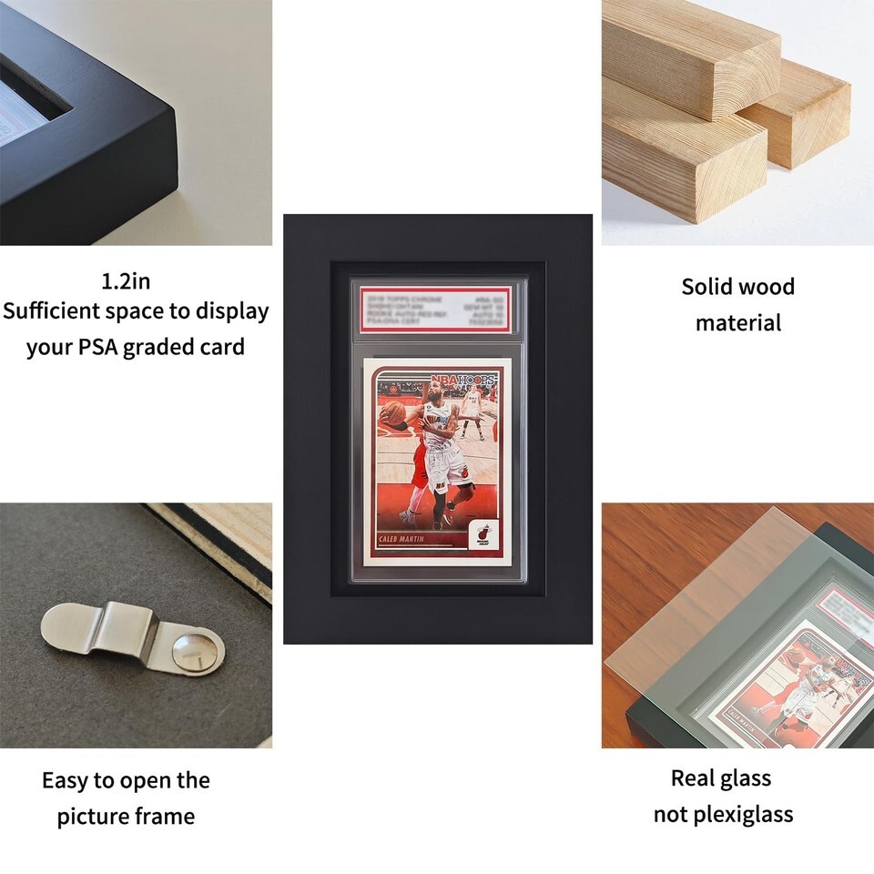 Graded Trading Card Display Case 1 PSA Slab Sport Football Baseball Wood Frame