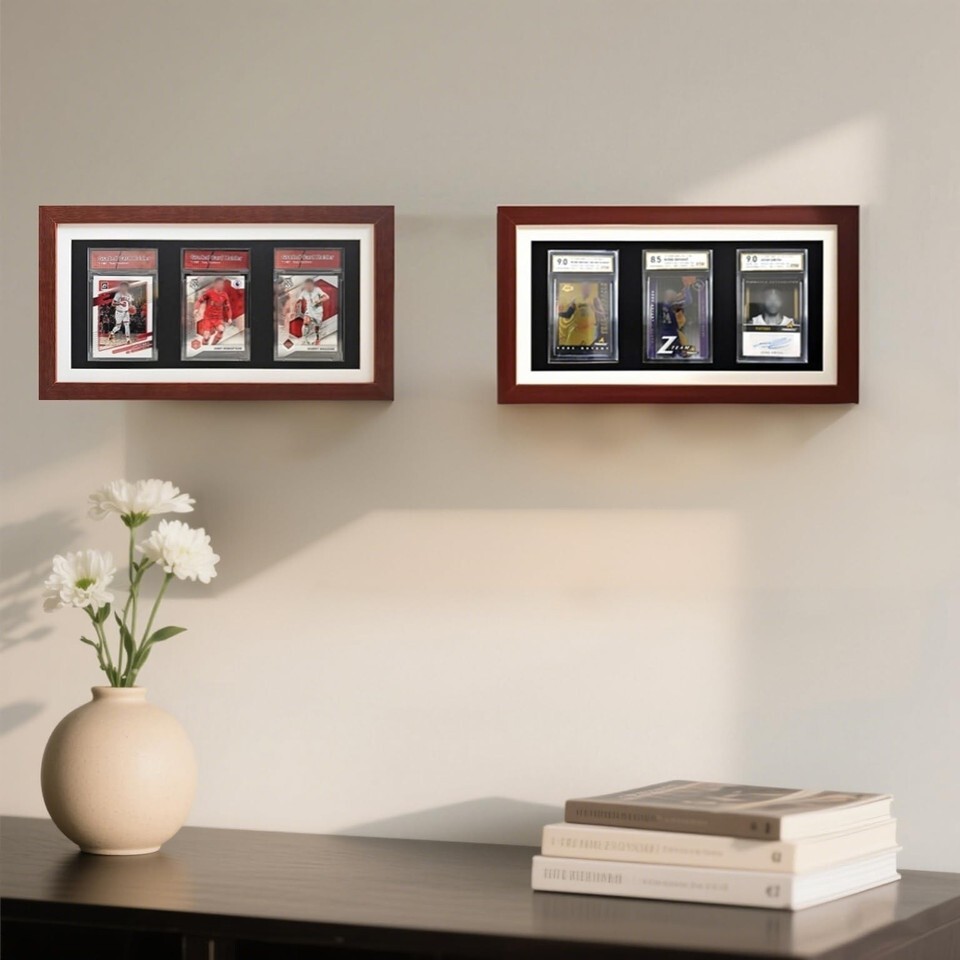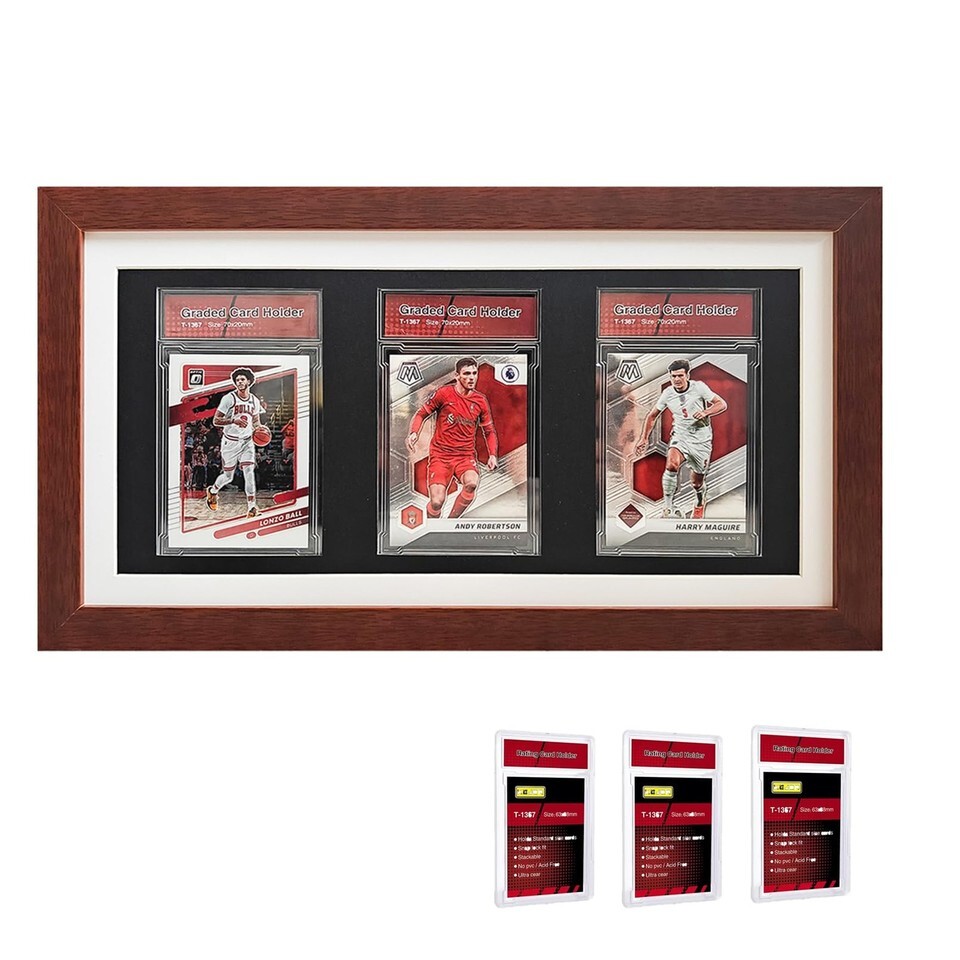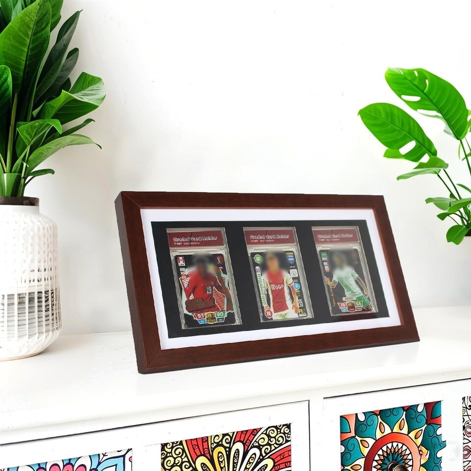 Graded Trading Card Display Case 3 PSA Slabs Sport Football Baseball Wood Frame