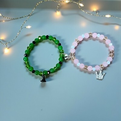 Wicked Elphaba Galinda Friendship Bracelets Rhinestone Pink Green Best Friends