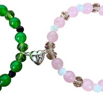 Wicked Elphaba Galinda Friendship Bracelets Rhinestone Pink Green Best Friends heart with magnetic! Such a sweet matching bracelet set!
