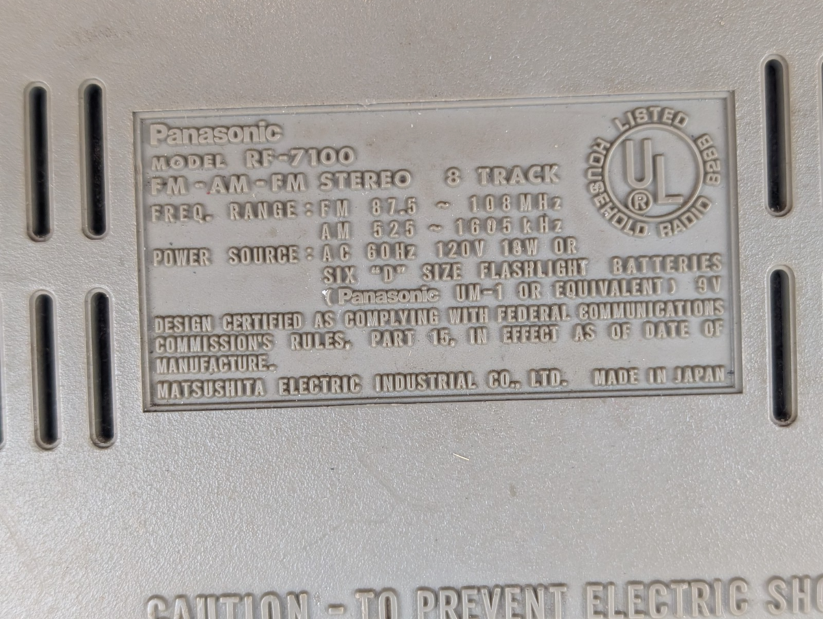 Up for sale is a Vintage Panasonic RF-7100 Stereo Spacer AM/FM 8 Track Portable Stereo